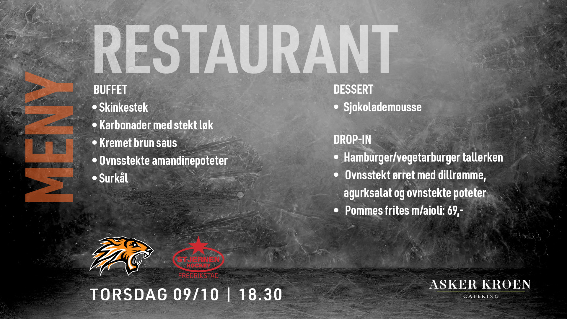 Maten serveres fra 1. time før kampstart til litt ut i første periode.